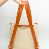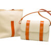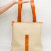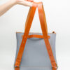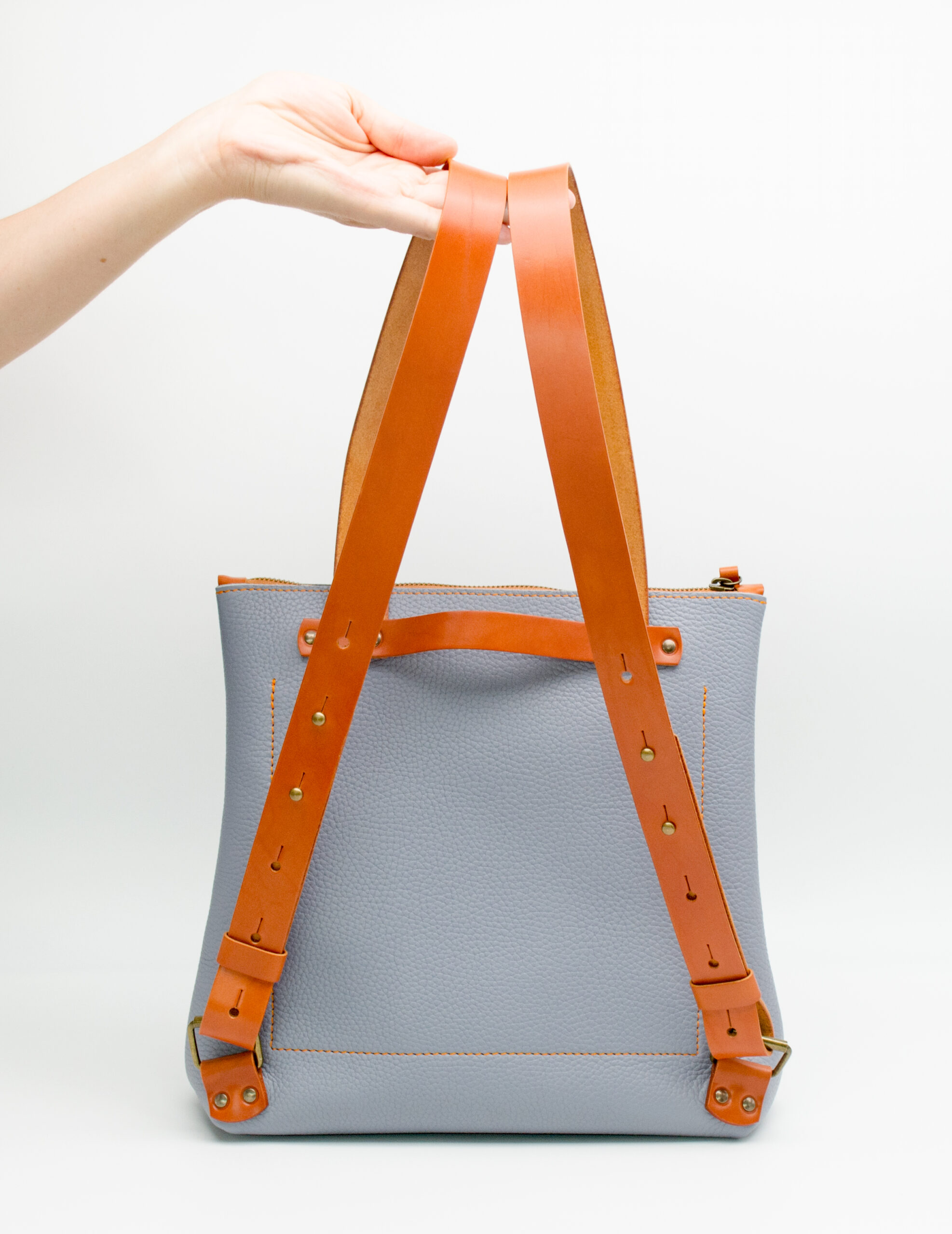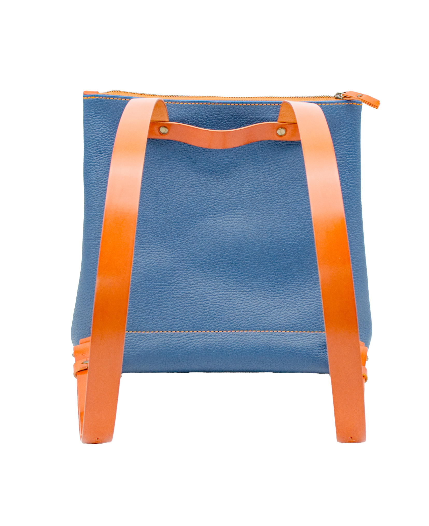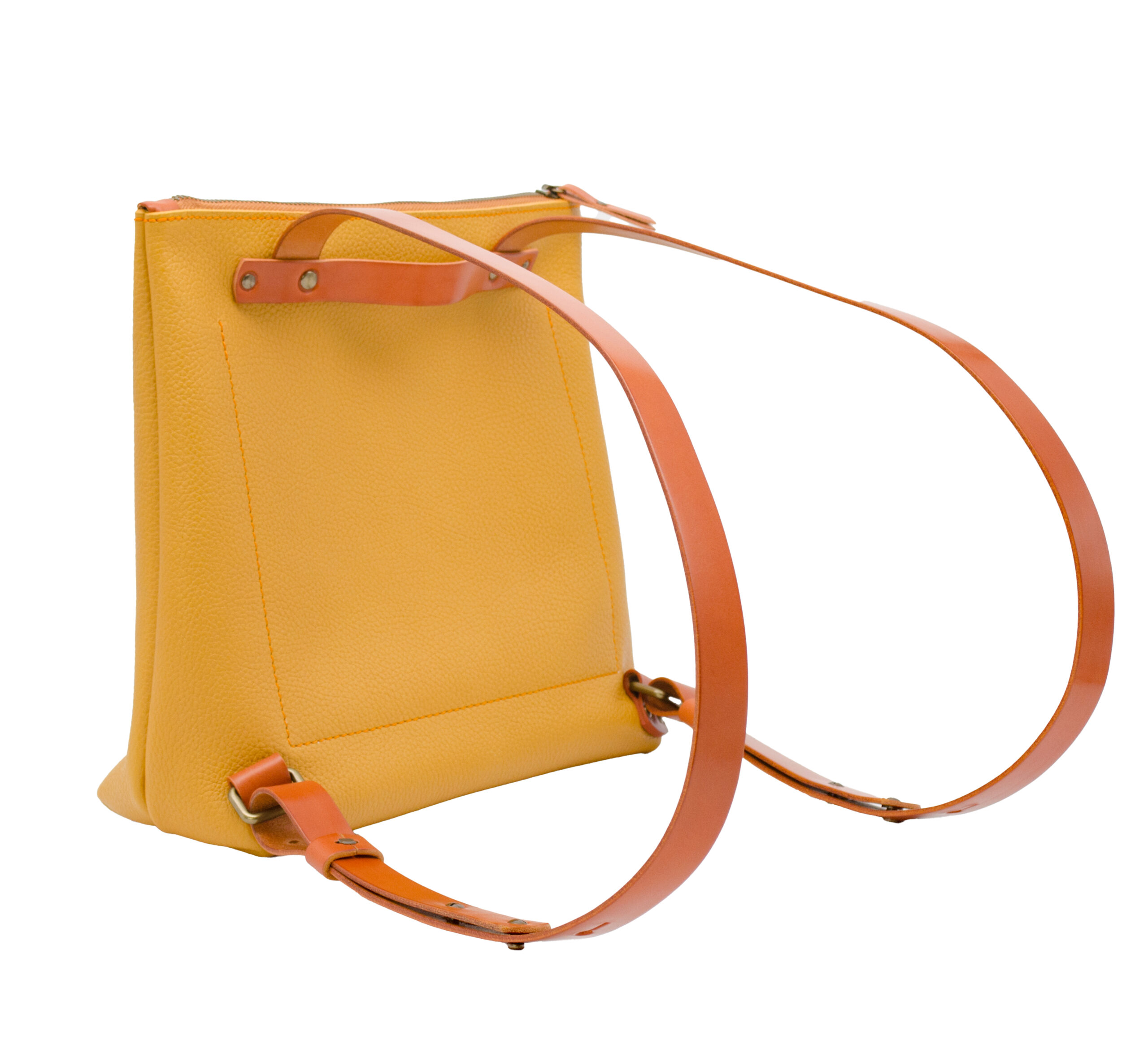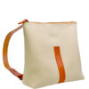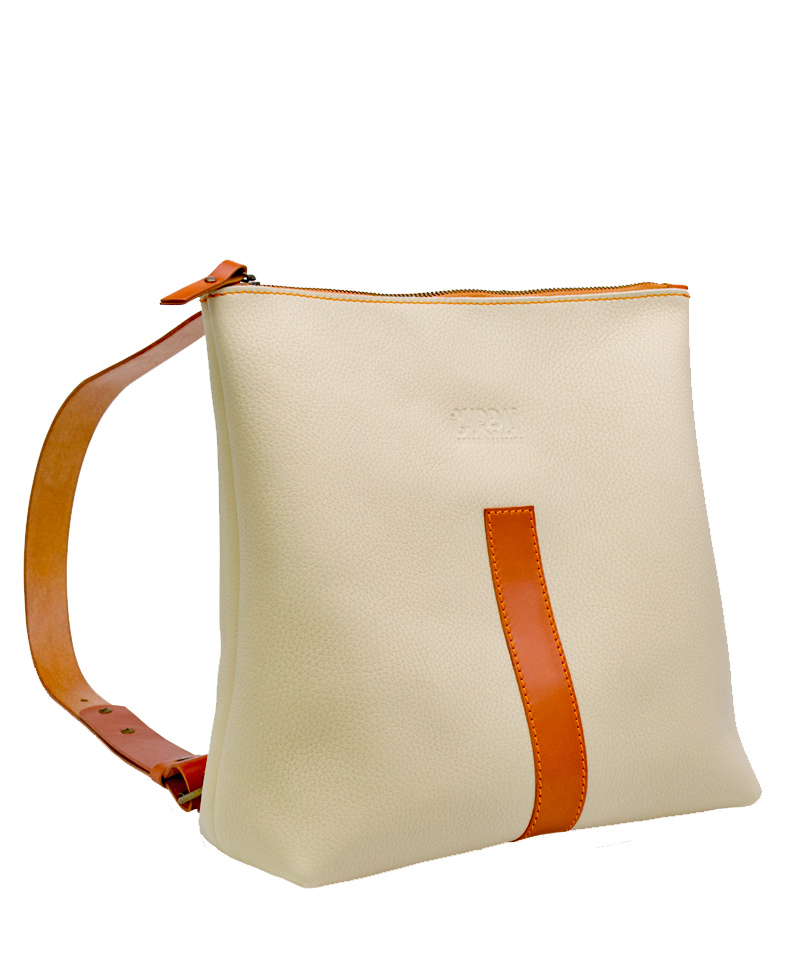 Está elaborada en una suave piel de ternera de estructura rectangular con un bolsillo interior y cierre de cremallera. Presenta tirantes regulables en cuero de curtido vegetal así como el detalle del cierre de la cremallera y el asa.
